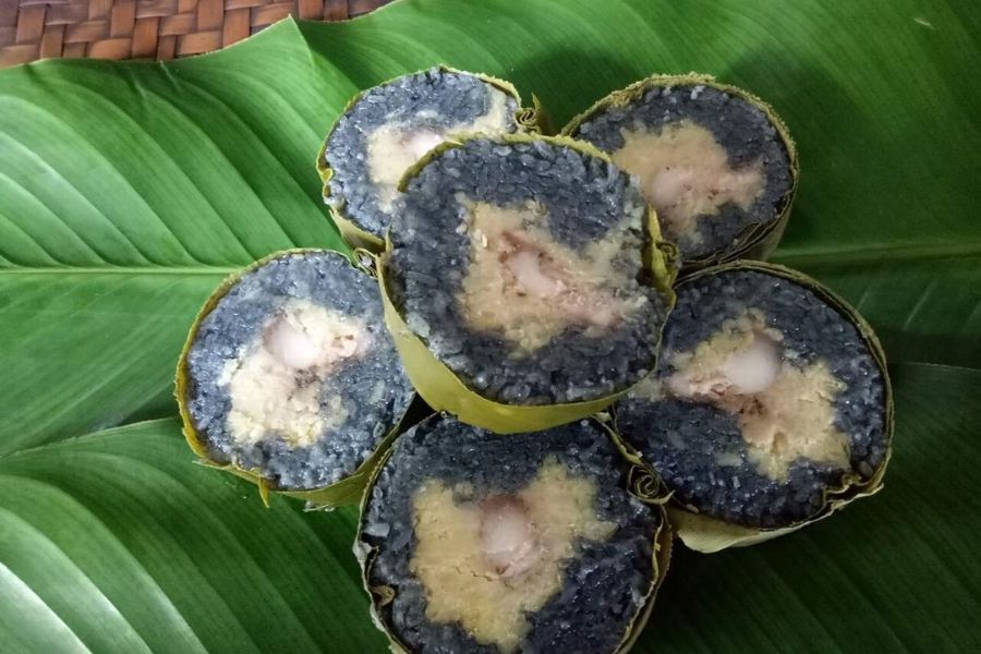 Bánh chưng đen từ nếp nương giã tay, nhân thịt hun khói, vị ngọt bùi. Món Tết truyền thống, sản xuất 150 tấn/năm. Chị Ngọc từ Nha Trang kể: "Thử bánh chưng đen tại chợ Tết Mù Cang Chải tháng 1/2025, giá 50.000 đồng/hộp – giòn rụm, thay bánh chưng hiện đại."
