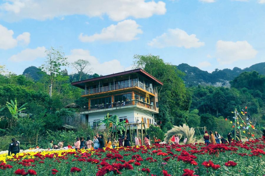 - Điểm nổi bật: Bữa ăn với nguyên liệu tươi từ vườn; học hát sli (dân ca Tày); view núi non hùng vĩ.