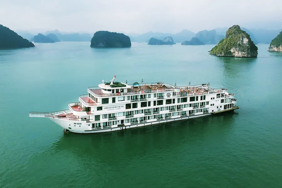 Ambassador Cruise phù hợp với khách đi đoàn lớn vì quy mô tàu lớn, sức chứa cao. Không gian nhà hàng và boong tàu rộng để tổ chức sự kiện, gala dễ dàng. Du thuyền Hạ Long sở hữu nhà hàng sức chứa hàng trăm khách, sân boong rộng khoảng 100m², khu jacuzzi ngoài trời, quầy bar, khu vực tổ chức sự kiện. Đây là một trong số ít du thuyền Hạ Long có thể tổ chức gala, tiệc tối, sự kiện riêng trên vịnh. Tuy nhiên, do số lượng khách đông nên trải nghiệm cá nhân hóa thấp hơn, dễ bị ồn vào giờ ăn.