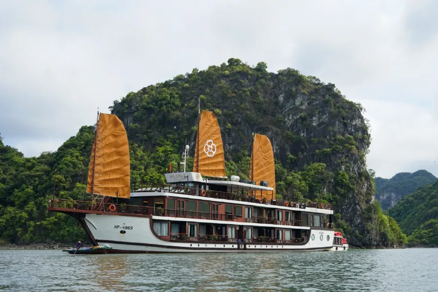 Peony Cruise - du thuyền Hạ Long 4 sao hoạt động tại khu vực Vịnh Hạ Long và vịnh Lan Hạ. Thiết kế của du thuyền không quá nhiều chi tiết trang trí cầu kỳ, tập trung vào công năng sử dụng và sự tiện lợi trong sinh hoạt. Không gian cabin và khu vực chung được bố trí gọn, dễ di chuyển. Hành trình thường kết hợp tham quan các điểm tự nhiên, chèo kayak, khám phá hang động theo tuyến Lan Hạ.du thuyền hạ long