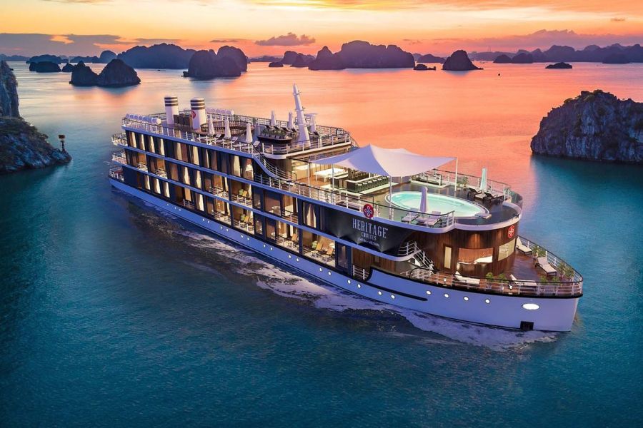 - Nghỉ đêm trên du thuyền Heritage Cruises giữa vịnh Lan Hạ, chèo kayak, ngắm hoàng hôn và thưởng thức ẩm thực tinh tế.