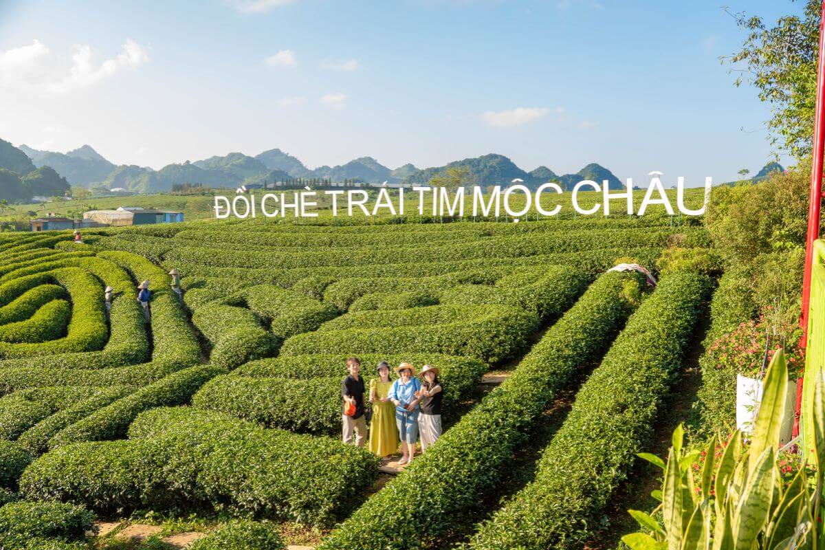 - Đồi chè Mộc Châu. Đồi chè đẹp nhất có lẽ là đồi chè trái tim, đồi chè chữ S. Cái mà người ta nghĩ đến đầu tiên khi nhắc đến Mộc Châu có lẽ là những đồi chè xanh mướt rộng ngút ngàn thỏa mãn tầm mắt. Màu xanh ngát của những nương chè khiến ai nấy như lạc vào một miền đất lạ, bình yên và dễ chịu lạ thường.