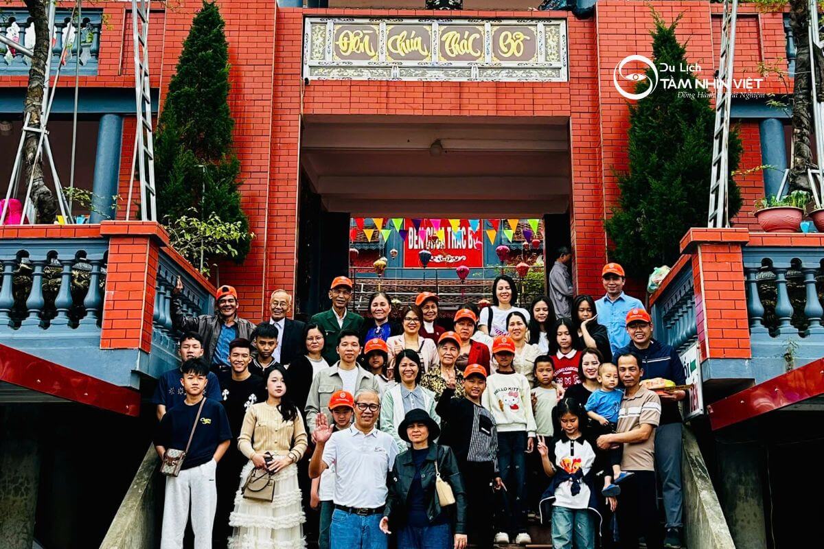 10h00: Đoàn đến chiêm bái đền Thác Bờ - nơi thờ Bà Chúa Thác Bờ, một trong những ngôi đền linh thiêng nổi tiếng nhất tỉnh Hòa Bình.